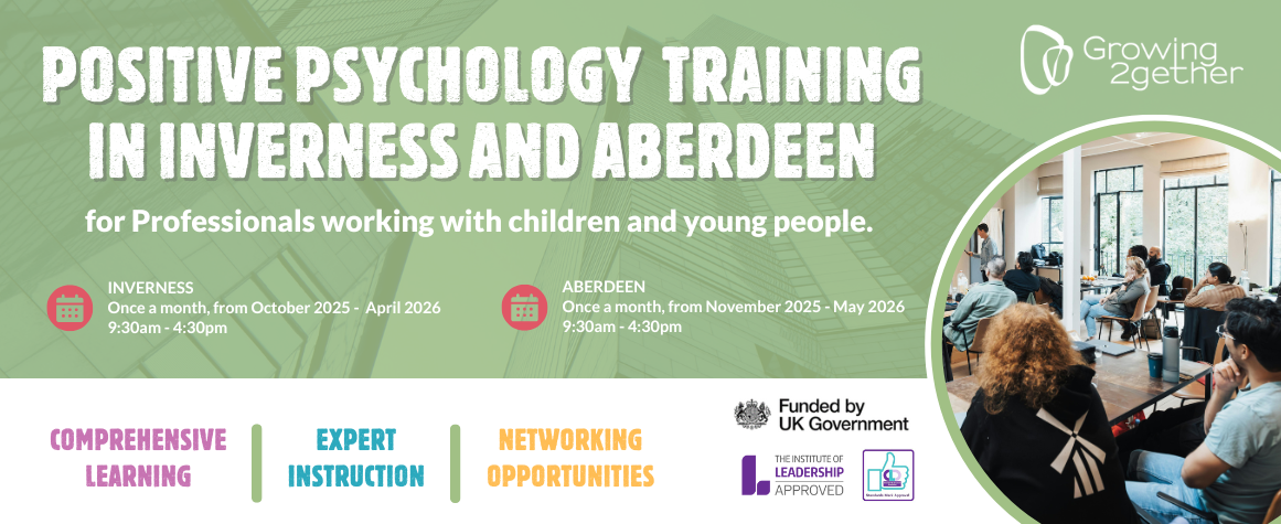Growing2gether is a Scottish charity that supports young people struggling with mental health, poverty, and challenging childhood experiences. We believe in giving all young people the chance to realise their unique potential. By using positive psychology we help show young people who they are and who they can become.